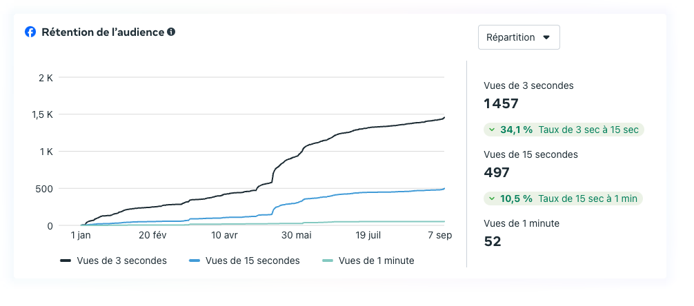 Tous nos indicateurs sont au vert, avec une progression constante et une belle croissance. Les graphiques ci-dessous illustrent clairement cette dynamique positive (Source meta sept 2024).